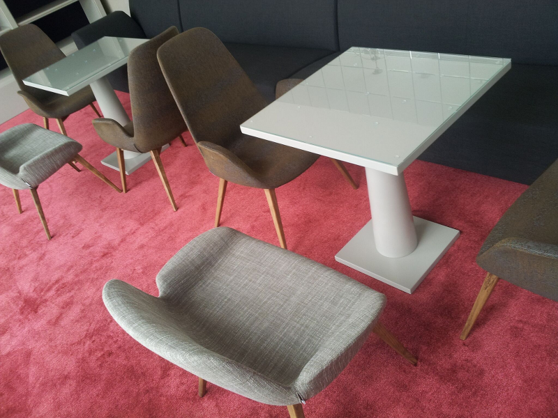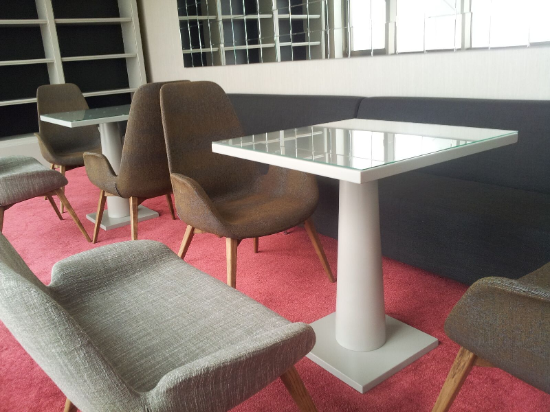 Konut, bina giriş holü ve site sosyal tesisleri bünyesindeki özel üretim; masa, kanepe ve koltuk çözümleri.
